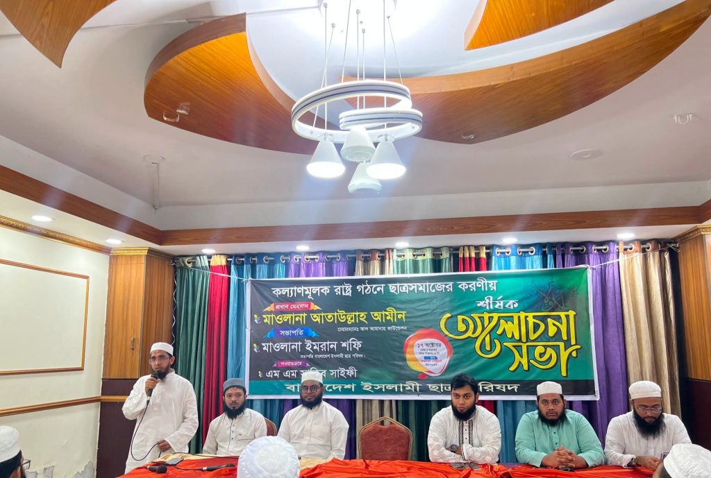কল্যাণমূলক রাষ্ট্র গঠনে ছাত্রসমাজের করণীয় বিষয়ে আলোচনা সভা অনুষ্ঠিত অক্টোবর ১৮, ২০২৫ বাংলাদেশ ইসলামী ছাত্র পরিষদের উদ্যোগে “কল্যাণমূলক রাষ্ট্র গঠনে ছাত্রসমাজের করণীয়” শীর্ষক এক আলোচনা সভা