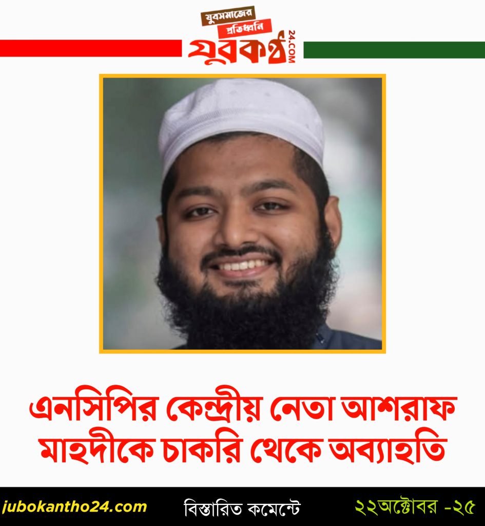 এনসিপির কেন্দ্রীয় নেতা আশরাফ মাহদীকে চাকরি থেকে অব্যাহতি