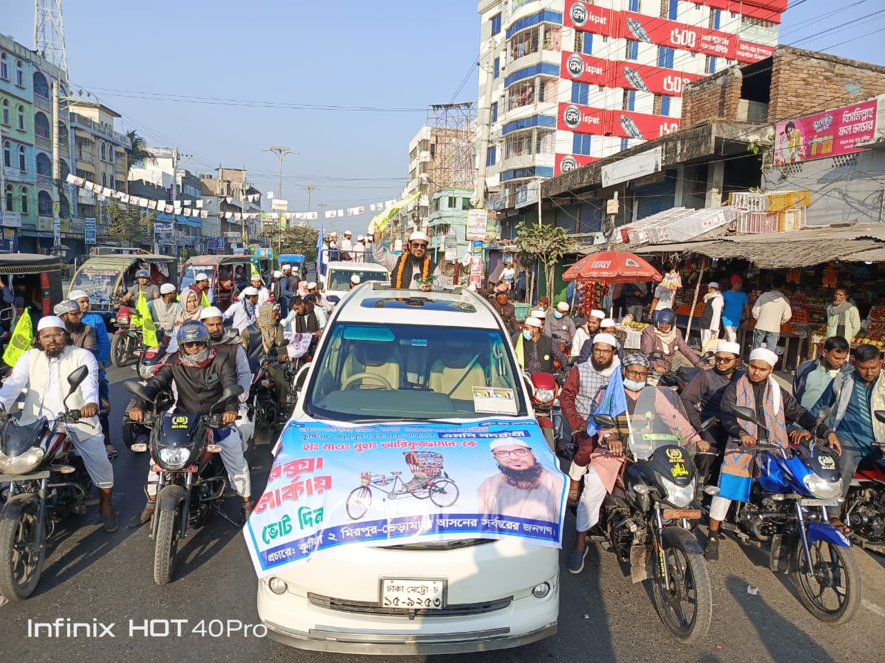 কুষ্টিয়া–২ (মিরপুর–ভেড়ামারা) আসনে রিকশা মার্কার সংসদ সদস্য পদপ্রার্থী হাফেজ মাওলানা আরিফুজ্জামান আরিফের পক্ষে আজ শুক্রবার (৫ ডিসেম্বর) বাদ জুমা এক বিশাল মোটরসাইকেল শোডাউন অনুষ্ঠিত হয়েছে।
