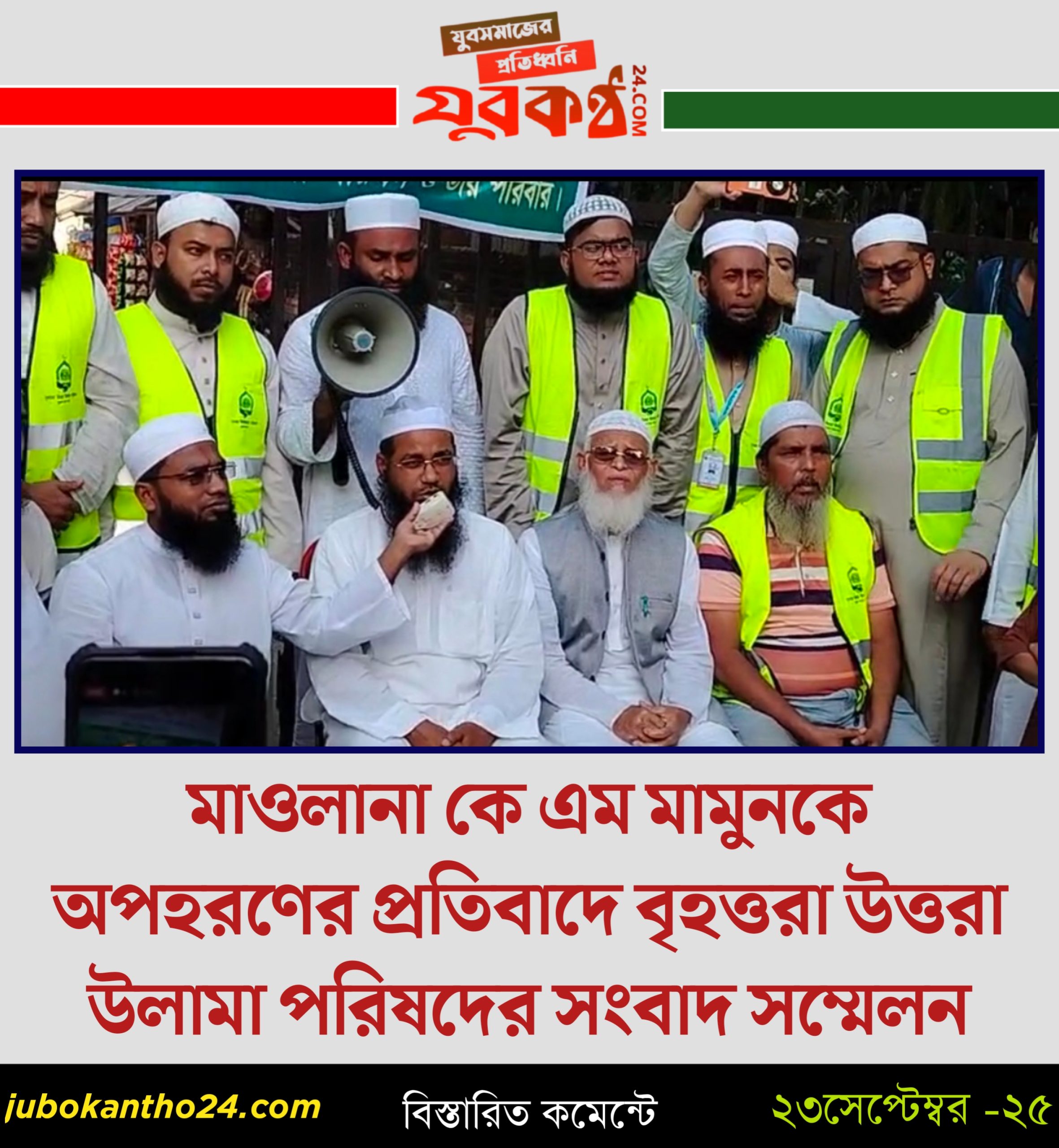 গুরুত্বপুর্ণ নিউজ, সারাদেশ মাওলানা কে এম মামুনকে অপহরণের প্রতিবাদে বৃহত্তরা উত্তরা উলামা পরিষদের সংবাদ সম্মেলন সেপ্টেম্বর ২৩, ২০২৫