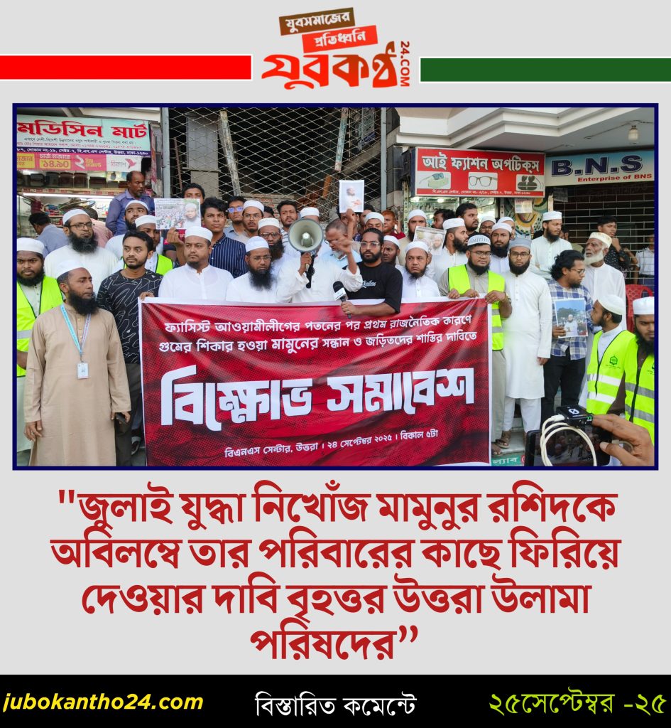 আমরা গভীর উদ্বেগ ও ক্ষোভের সঙ্গে লক্ষ্য করছি, উত্তরা বৈষম্যবিরোধী ছাত্র আন্দোলনের সাবেক যুগ্ম আহ্বায়ক কে এম মামুনুর রশিদ কয়েক দিন ধরে রহস্যজনকভাবে নিখোঁজ রয়েছেন। একজন সচেতন ছাত্রনেতা ও সমাজকর্মীর এমনভাবে নিখোঁজ হয়ে যাওয়া দেশের আইন-শৃঙ্খলা পরিস্থিতি নিয়ে গুরুতর প্রশ্নের জন্ম দিয়েছে।