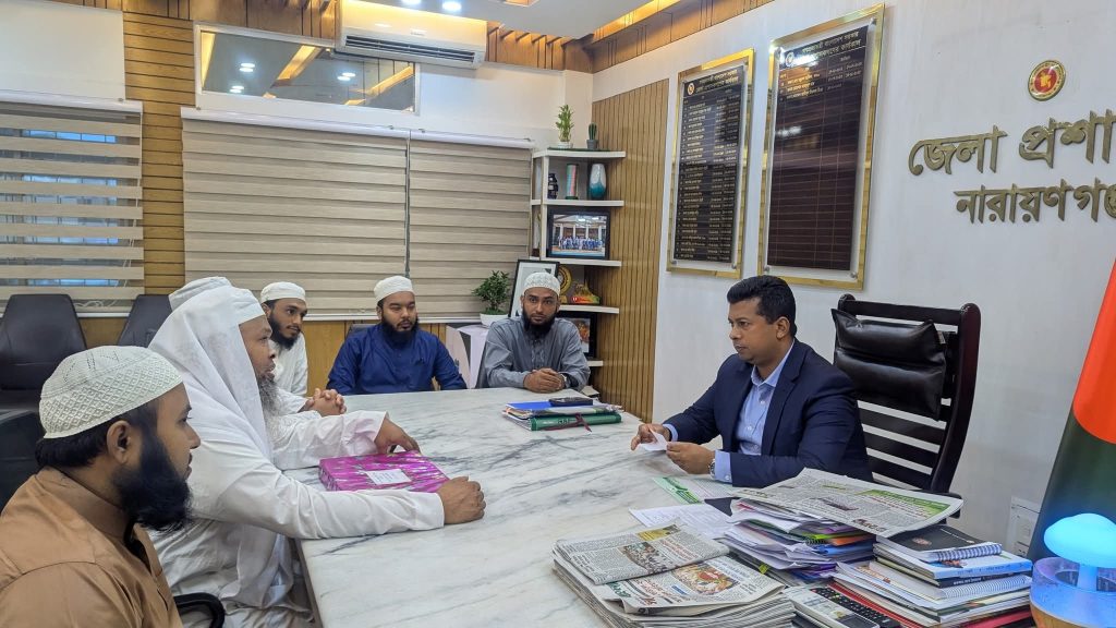 বাংলাদেশ খেলাফত মজলিস নারায়ণগঞ্জ মহানগরীর প্রতিনিধিদল নারায়ণগঞ্জ জেলা প্রশাসক (ডিসি) জনাব জাহিদুল ইসলাম মিঞা এর সাথে তাঁর কার্যালয়ে সৌজন্য সাক্ষাৎ করেন।