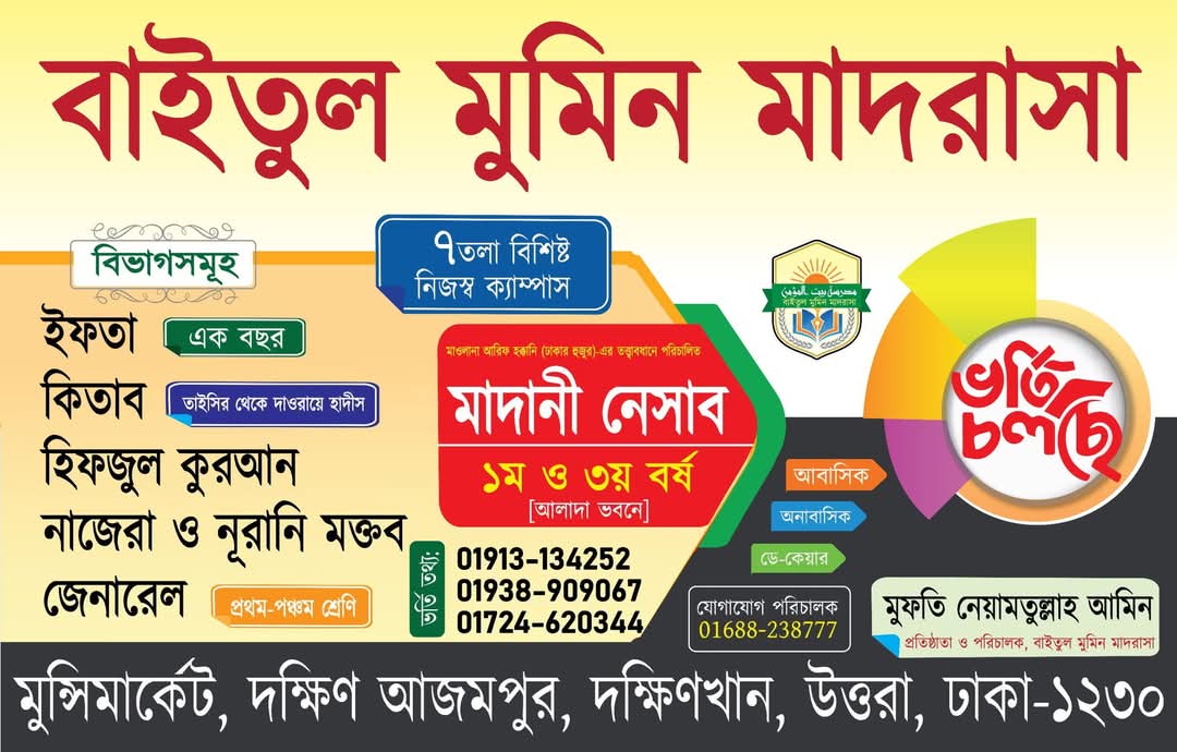 দাওরায়ে হাদিস, ইফতাসহ ‘বাইতুল মুমিন মাদরাসা’র সকল বিভাগে ভর্তি শুরু