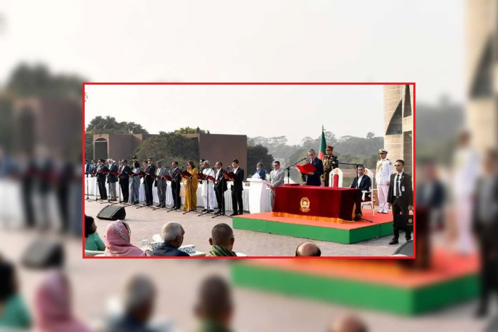 গত ১৭ ফেব্রুয়ারি জাতীয় সংসদ ভবনের দক্ষিণ প্লাজায় ২৫ জন মন্ত্রী শপথ নেন। তাঁদের মধ্যে দুজন টেকনোক্র্যাট কোটায় মন্ত্রী হয়েছেন। শপথবাক্য পাঠ করান রাষ্ট্রপতি মো. সাহাবুদ্দিন।
