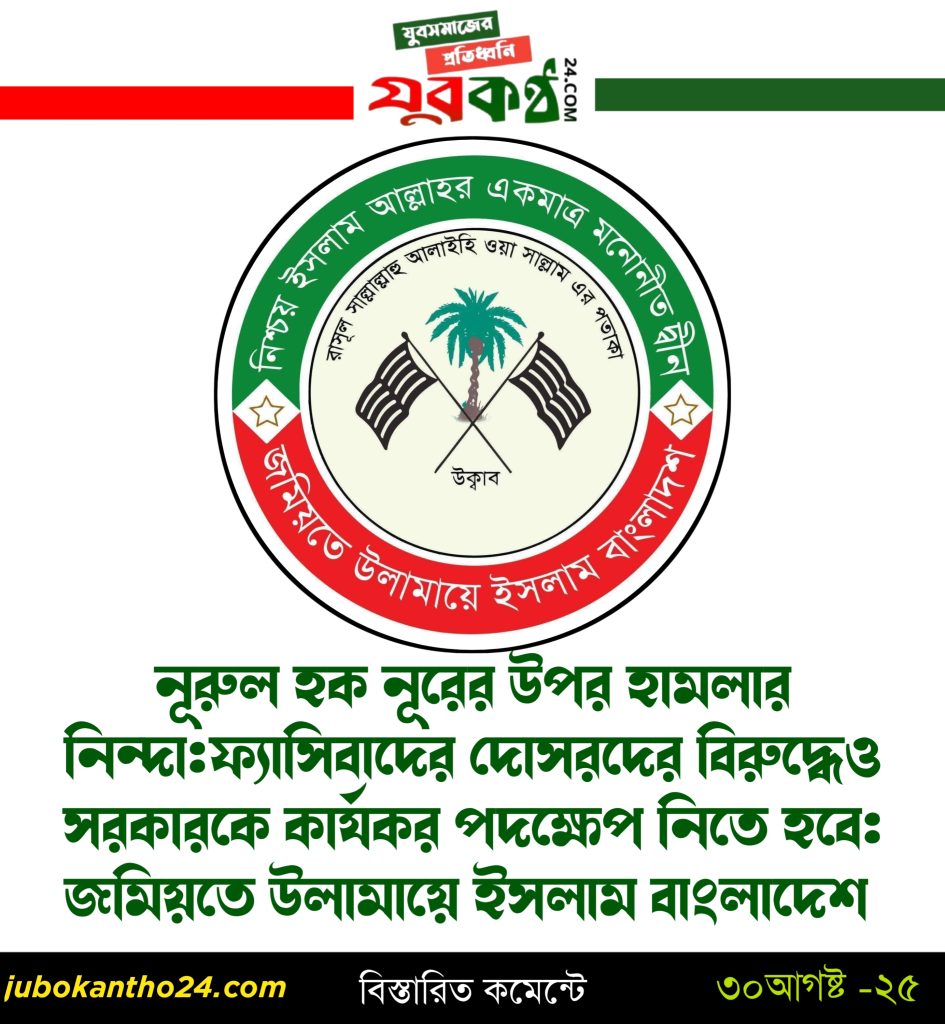 জমিয়তে উলামায়ে ইসলাম বাংলাদেশের সিনিয়র সহ-সভাপতি মাওলানা আব্দুর রব ইউসুফী গণঅধিকার পরিষদের সভাপতি নূরুল হক নূরের উপর হামলা ও তাকে রক্তাক্ত করার তীব্র নিন্দা জানিয়ে বলেছেন, এই মূহুর্তে দেশে এ রকম হামলা কোন ভাবেই মেনে নেয়া যায় না। এ ঘটনার সুষ্ঠু ও নিরপেক্ষ তদন্ত চাই আমরা। সরকারকে সবার সাথেই নিরপেক্ষ আচরণ করতে হবে।