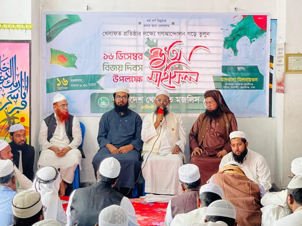 আজ (১৬ ডিসেম্বর’২৫, মঙ্গলবার) সকাল ৯টা থেকে বাংলাদেশ খেলাফত মজলিস কেরাণীগঞ্জ মডেল থানাধীন কালিন্দী ইউনিয়ন শাখার উদ্যোগে বিজয় দিবস উপলক্ষে দোয়া মাহফিল অনুষ্ঠিত হয়েছে। এতে অংশগ্রহণ করে অতিথি আলোচনায় এসব কথা বলেন মাওলানা ইলিয়াস হামিদী।
