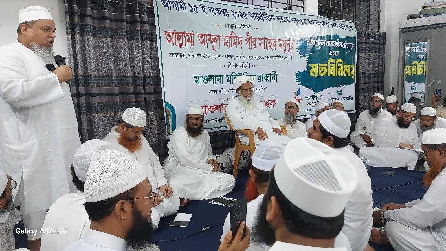 আগামী ১৫ নভেম্বর ২০২৫ ঐতিহাসিক সোহরাওয়ার্দী উদ্যানে আয়োজিত খতমে নবুওয়াত মহাসমাবেশ সফলভাবে বাস্তবায়নের লক্ষ্যে আজ ৮ অক্টোবর (বুধবার) বাদ জোহর রাজধানীর জামিয়া রাহমানিয়া আরাবিয়ায় রাবেতাতুল ওয়ায়েজীন বাংলাদেশ ও সম্মিলিত খতমে নবুওয়াত পরিষদের যৌথ উদ্যোগে এক মতবিনিময় সভা অনুষ্ঠিত হয়েছে।