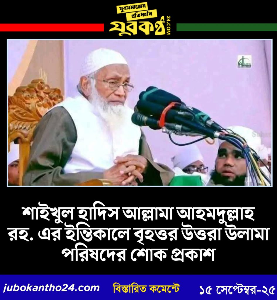 জামিয়া ইসলামিয়া পটিয়ার শাইখুল হাদিস, প্রধান মুফতি ও সদরুল মুহতামিম আল্লামা আহমদুল্লাহ রহ. এর ইন্তিকালে বৃহত্তর উত্তরা উলামা পরিষদ গভীর শোক প্রকাশ করেছে।