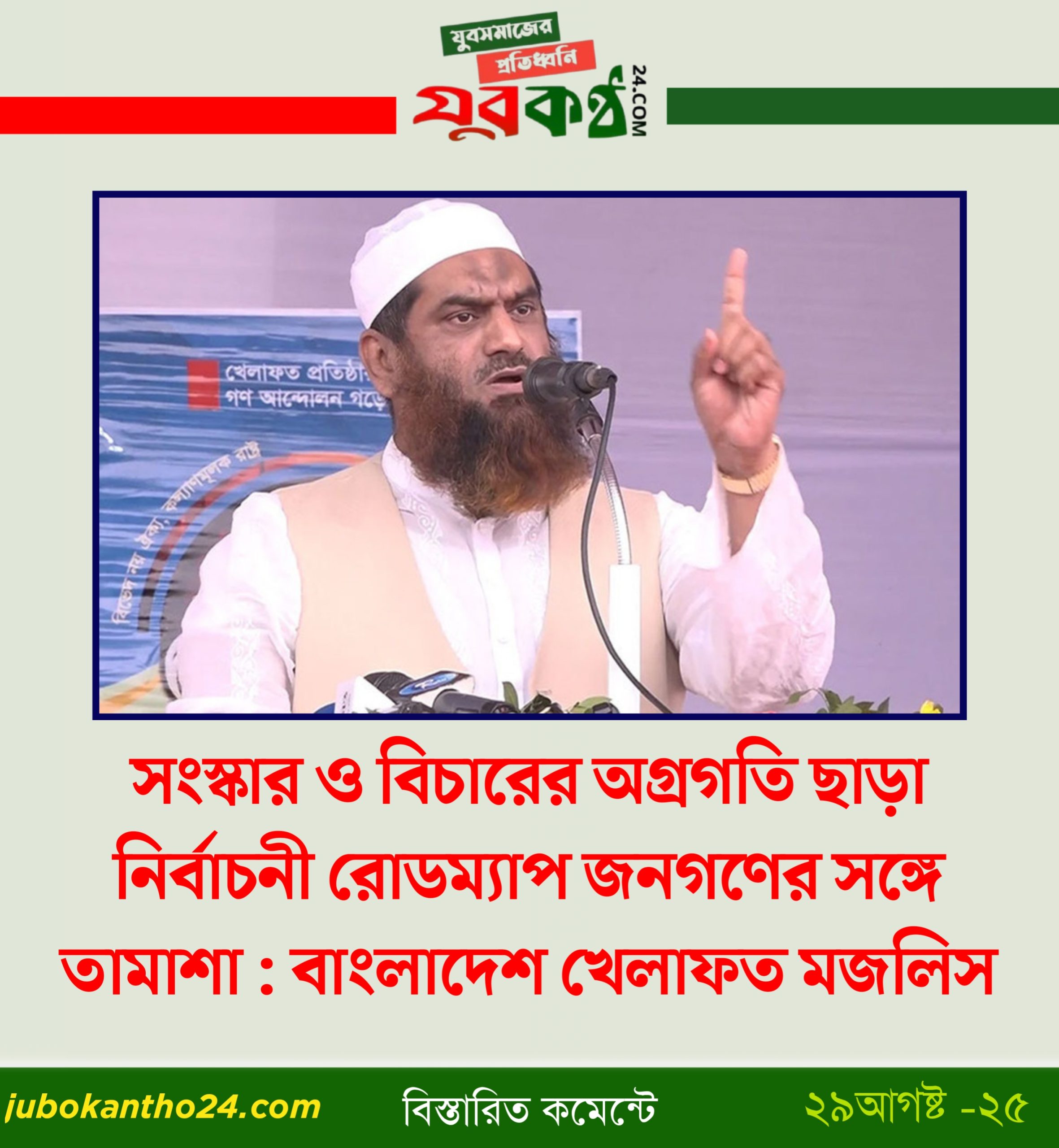 গুরুত্বপুর্ণ নিউজ, জাতীয় সংস্কার ও বিচারের অগ্রগতি ছাড়া নির্বাচনী রোডম্যাপ জনগণের সঙ্গে তামাশা – বাংলাদেশ খেলাফত মজলিস আগস্ট ২৯, ২০২৫