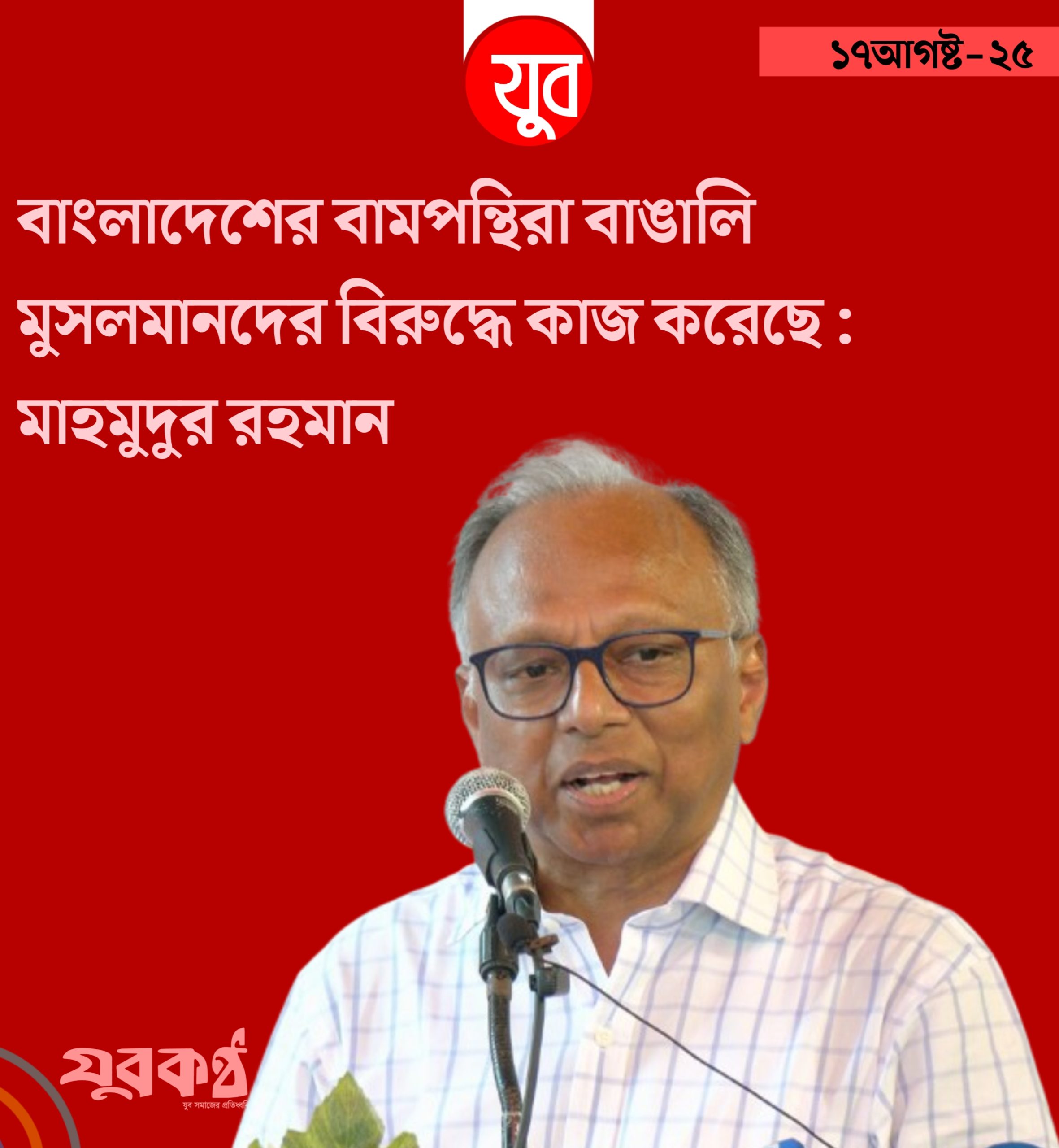 গুরুত্বপুর্ণ নিউজ, জাতীয় বাংলাদেশের বামপন্থিরা বাঙালি মুসলমানদের বিরুদ্ধে কাজ করেছে : মাহমুদুর রহমান আগস্ট ১৬, ২০২৫