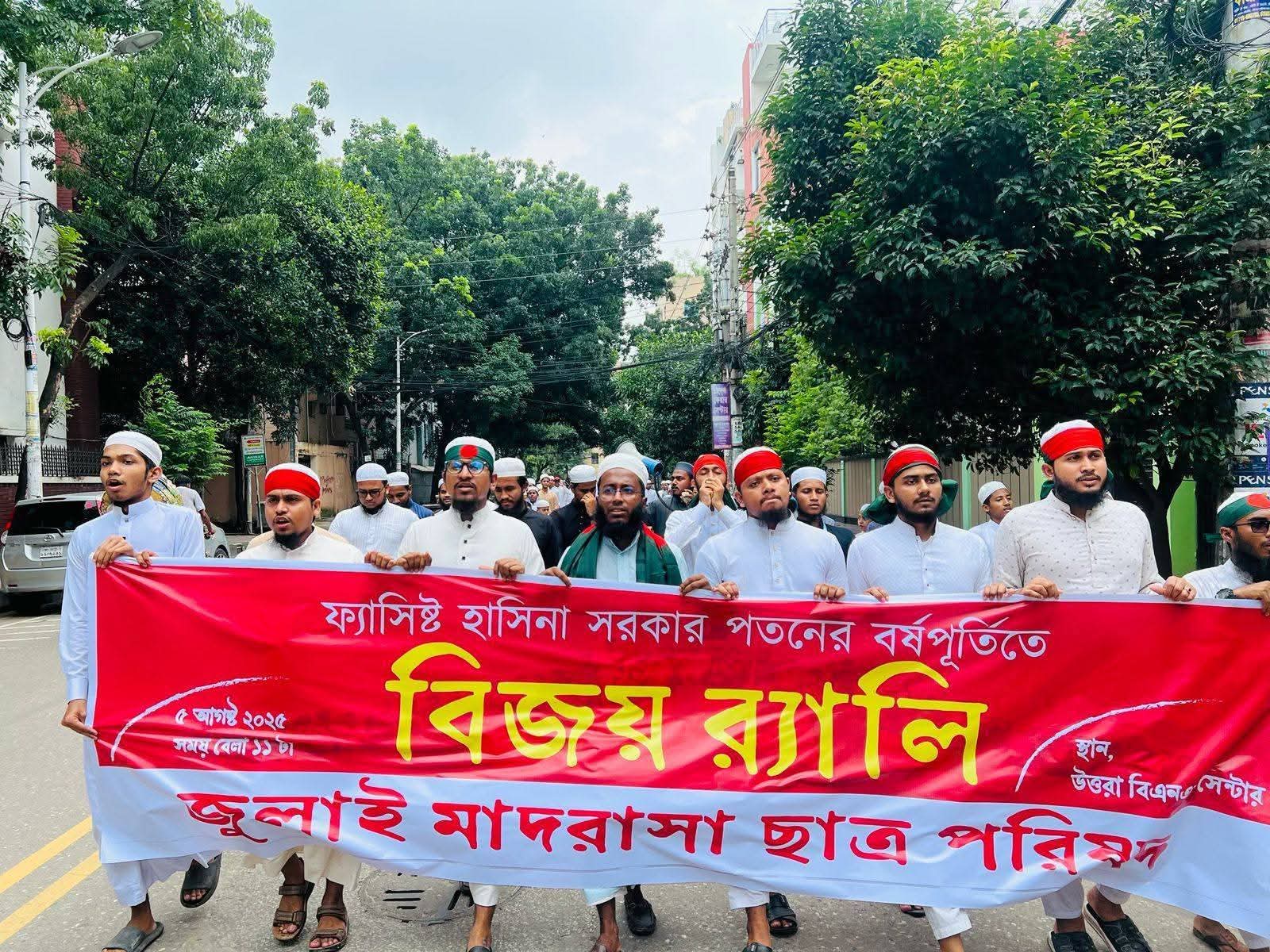 গুরুত্বপুর্ণ নিউজ, জাতীয় ফ্যাসিস্ট হাসিনা সরকার পতনের বর্ষপূর্তিতে ‘জুলাই মাদরাসা ছাত্র পরিষদ -এর বিজয় র্যালি অনুষ্ঠিত আগস্ট ৫, ২০২৫