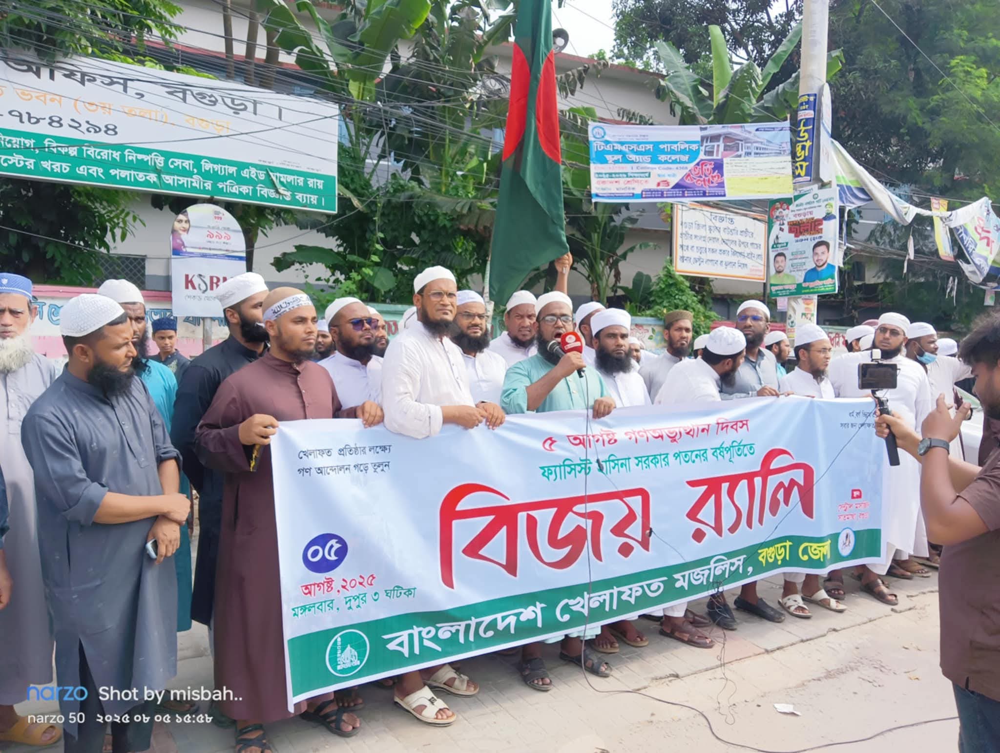 গুরুত্বপুর্ণ নিউজ, সারাদেশ বগুড়ায় ফ্যাসিবাদ পতনের বর্ষপূর্তি উপলক্ষে বাংলাদেশ খেলাফত মজলিসের বিজয় র্যালী আগস্ট ৫, ২০২৫